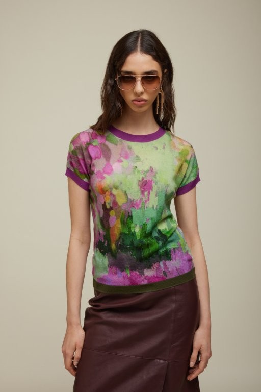 Wollen trui van Jei's in een all-over dessin met korte mouwen en ronde hals. Materiaal: Merino wol 100%