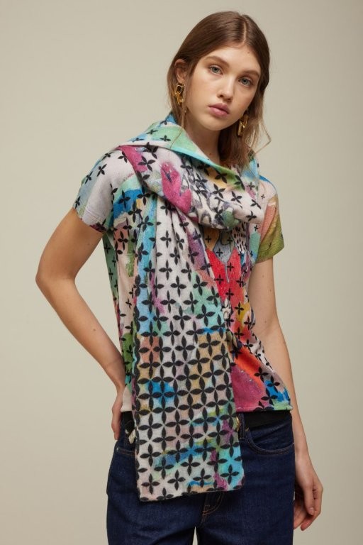 Sjaal van Jei's in een all-over dessin, afmeting 170 x 20 cm. Materiaal: Wol 46%| alpaca 34%| polyamide 20%