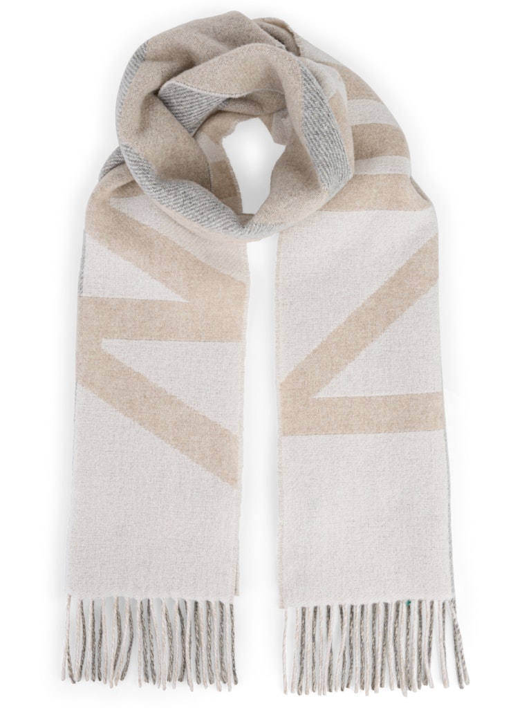 Lange sjaal van Marc Cain met een oversized logoprint en franjes aan de uiteinden. Materiaal: Wol 77%| polyamide 23%