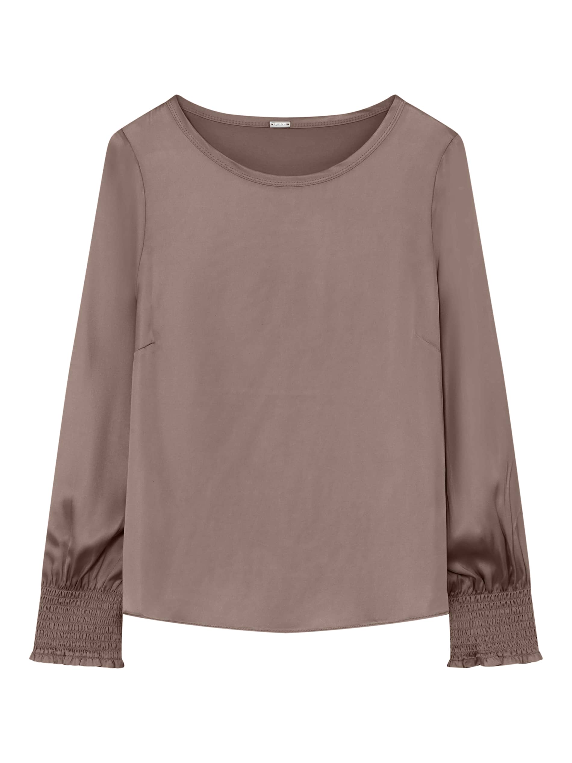 Glanzende blouse van Gustav met lange mouwen voorzien van gesmokte manchetten en een ruime ronde hals. Materiaal: Viscose 95%| elastan 5%