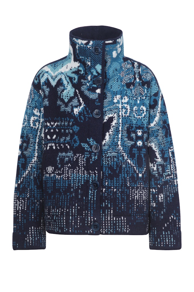Jacket van Ivko Woman in een all-over dessin met lange mouwen, opstaande kraag, knoopsluiting en twee steekzakken. Materiaal: Wol 80%| nylon 20%
