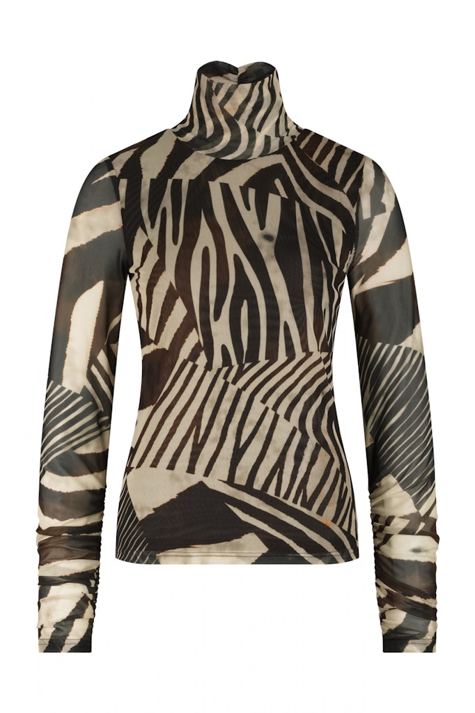 Top van Label Dot in een all-over dessin met lange mouwen en een opstaande kraag. Materiaal: Polyester 95%| elastan 5%