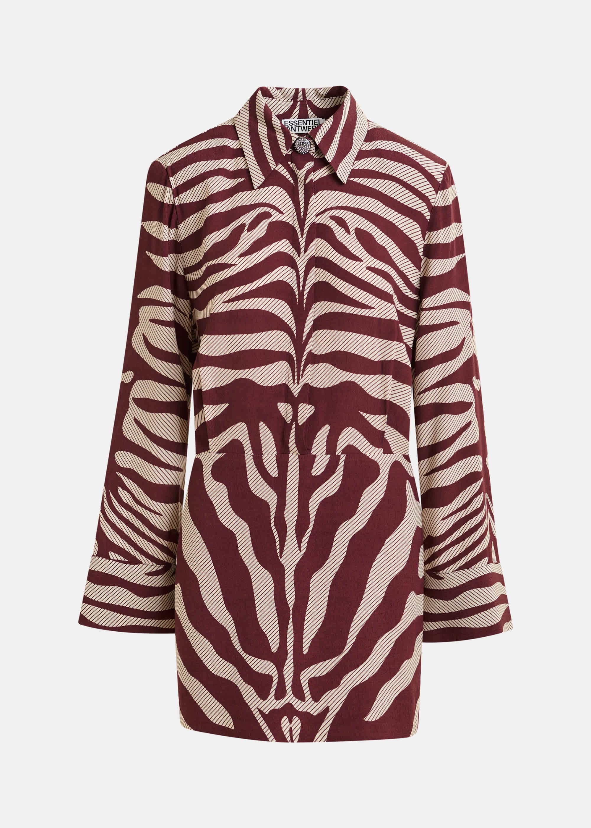 Korte jurk van Essentiel Antwerp in en zebra jacquard dessin met lange mouwen, kraag, deels gevoerd, verborgen ritssluiting en een holle plooi in de taille.