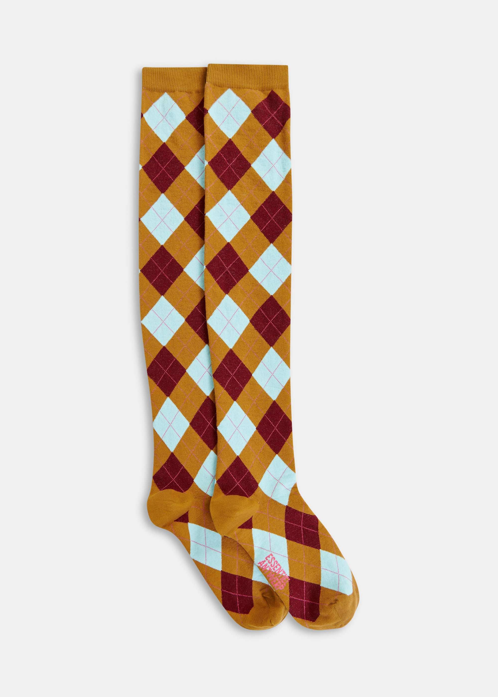 Kniekousen van Essentiel Antwerp in een ruitjesmotief en geribde boorden. Materiaal: Katoen 75%| polyamide 23%| elastan 2%