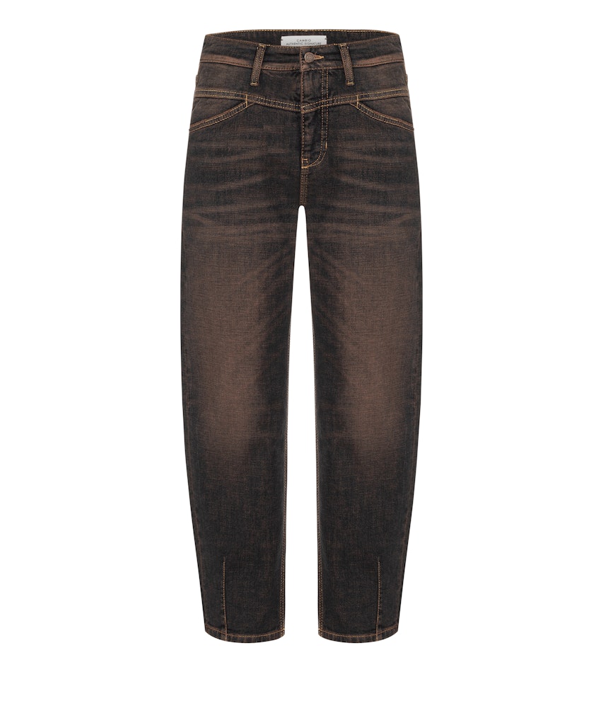 Enkellange, 4-pocket barrel jeans van Cambio in een bruine wassing met een knoop- en ritssluiting. Materiaal: Katoen 98%| elastan 2%
