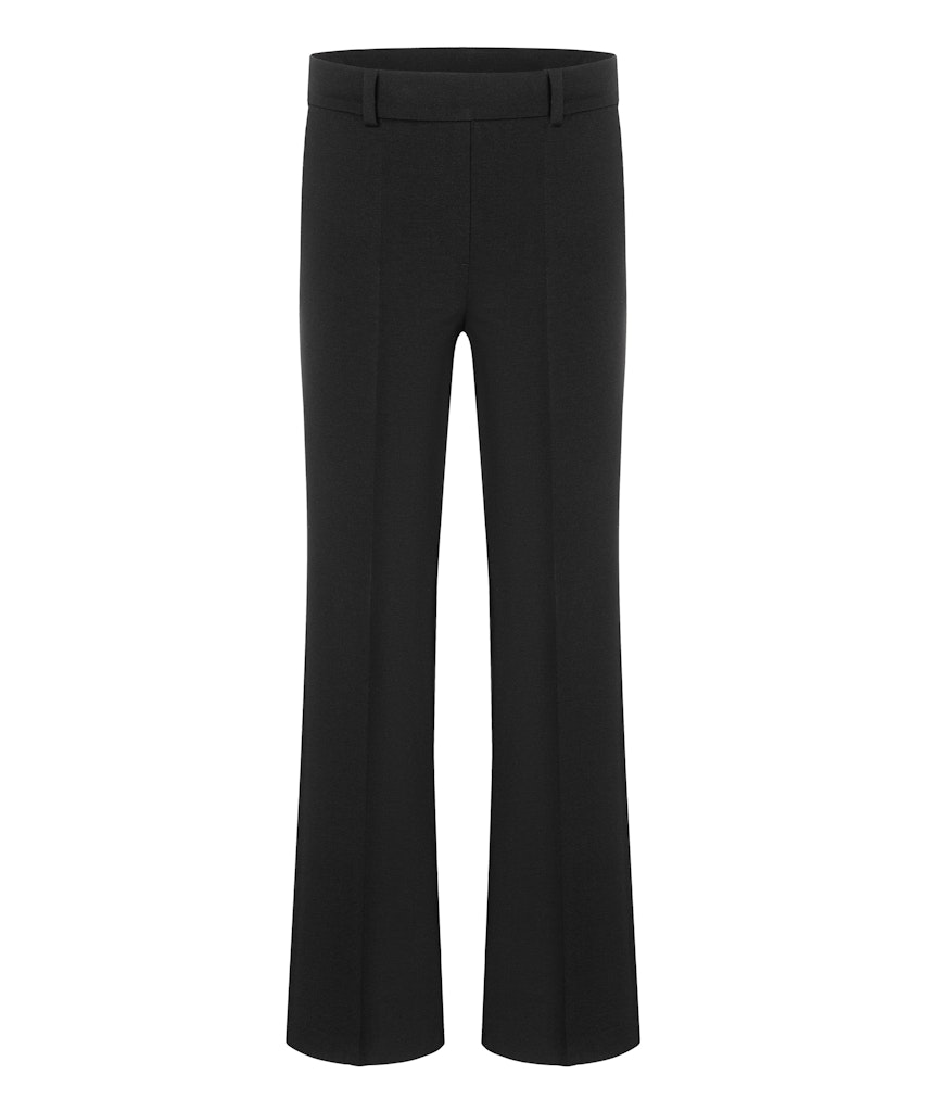Flared broek van Cambio met steekzakken, twee paspelzakken aan de achterzijde en een elastische tailleband.