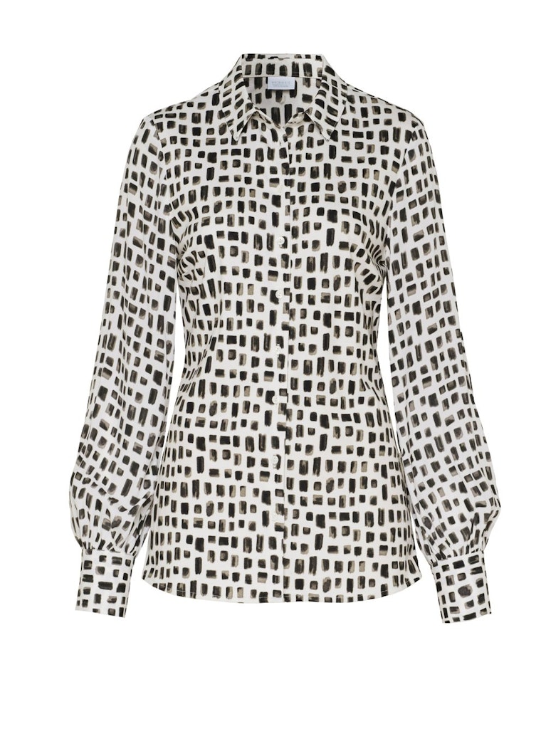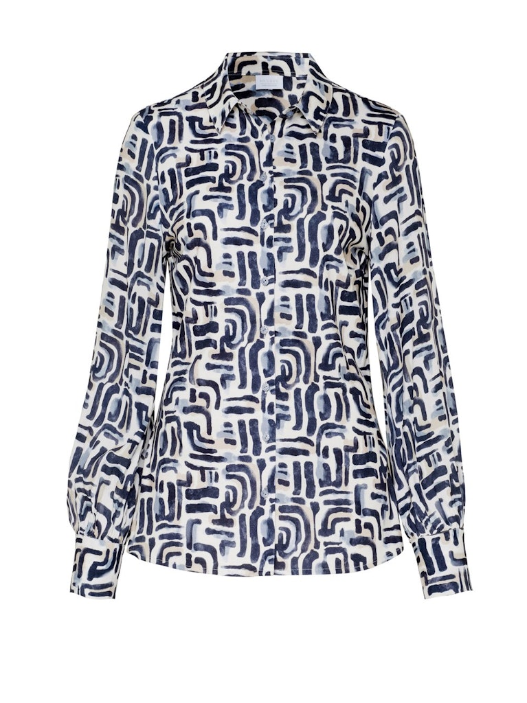 Blouse van Desoto in een all-over dessin met lange mouwen, kraag en een knoopsluiting. Materiaal: Katoen 100%