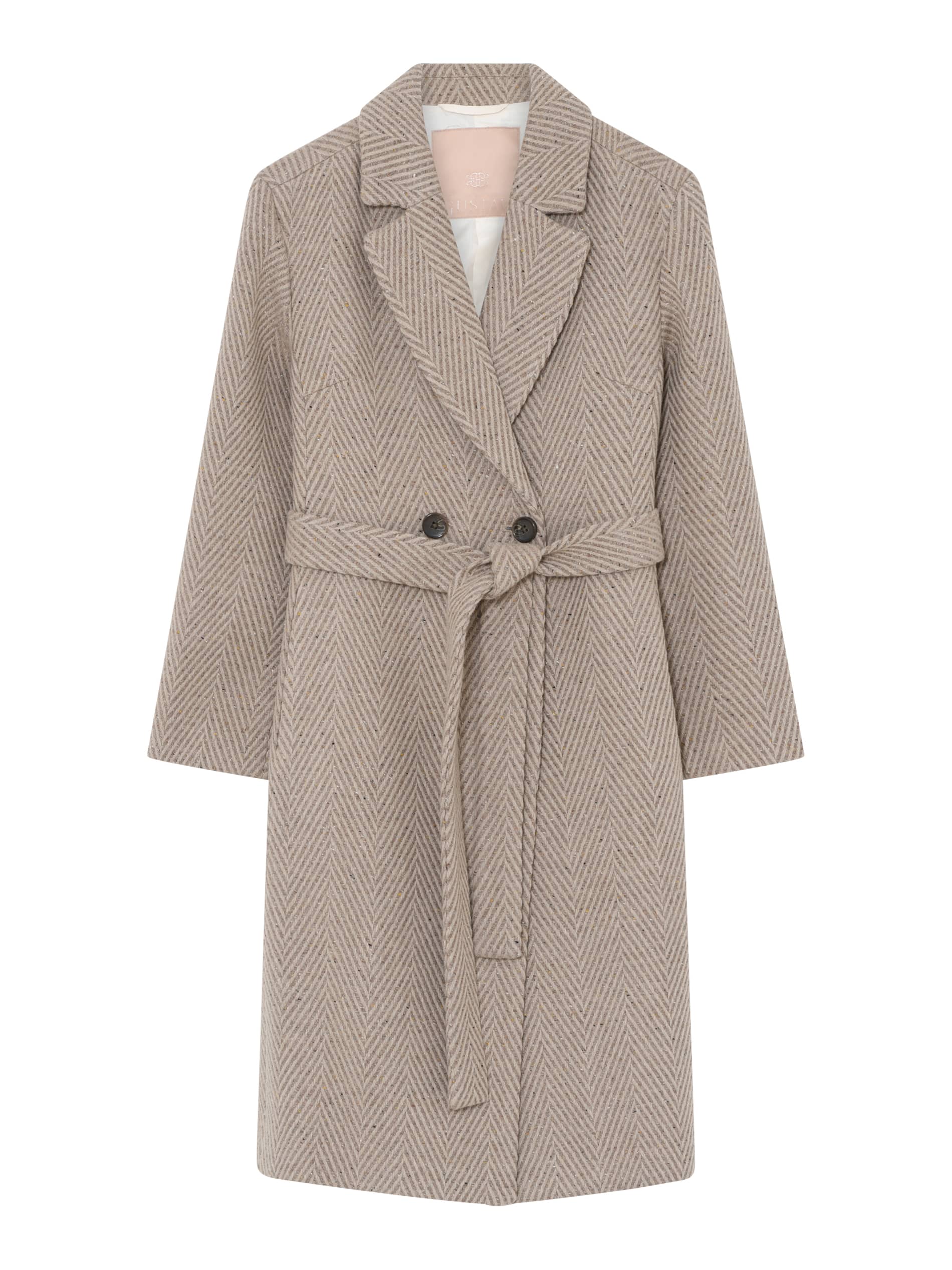 Jas van Gustav in visgraat patroon met een subtiele glitterdraad erin verwerkt, double-breasted knoopsluiting, reverskraag en steekzakken.