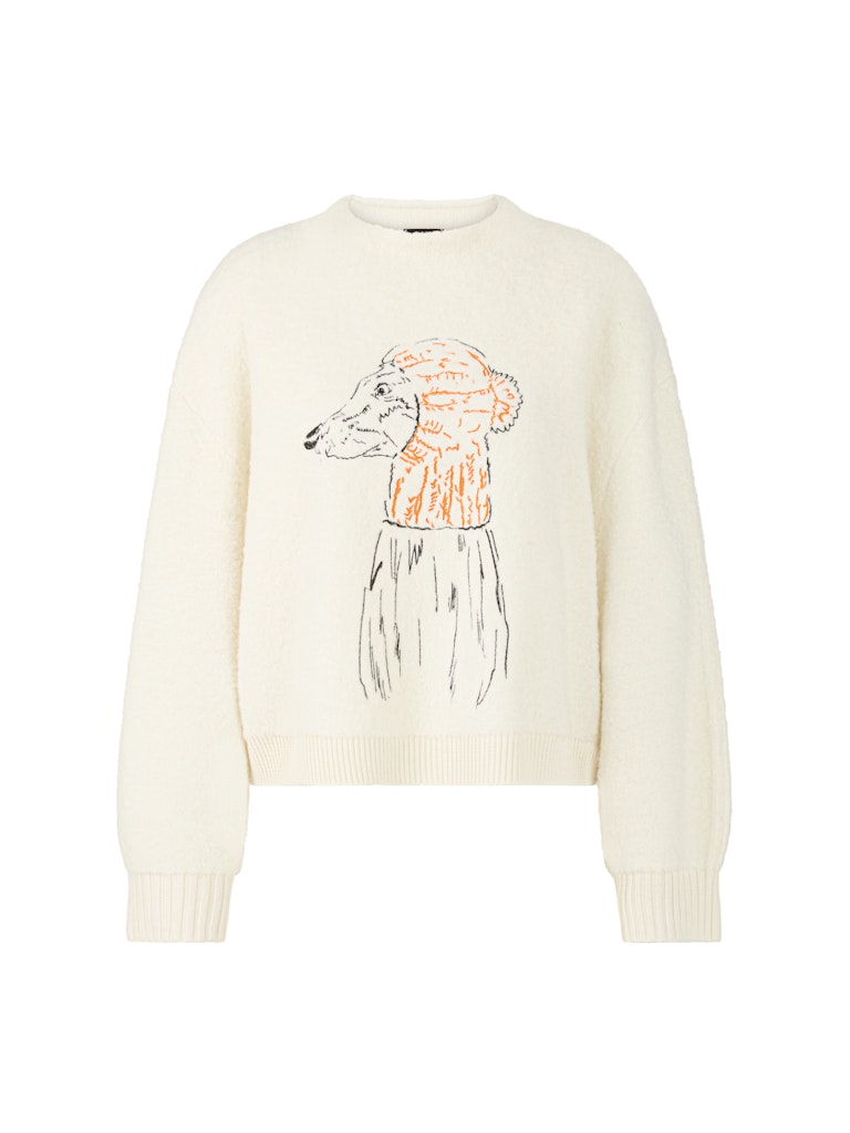 Gebreide trui van Marc Cain Sprts met een hondenprint aan de voorzijde, lange mouwen, ronde hals en ribgebreide boorden.