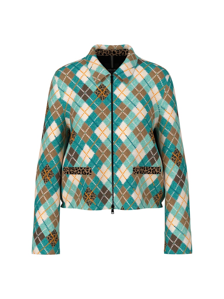 Geruit scuba vest van Marc Cain Sports met lange mouwen, deelbare ritssluiting en twee paspelzakken voorzien van luipaard details