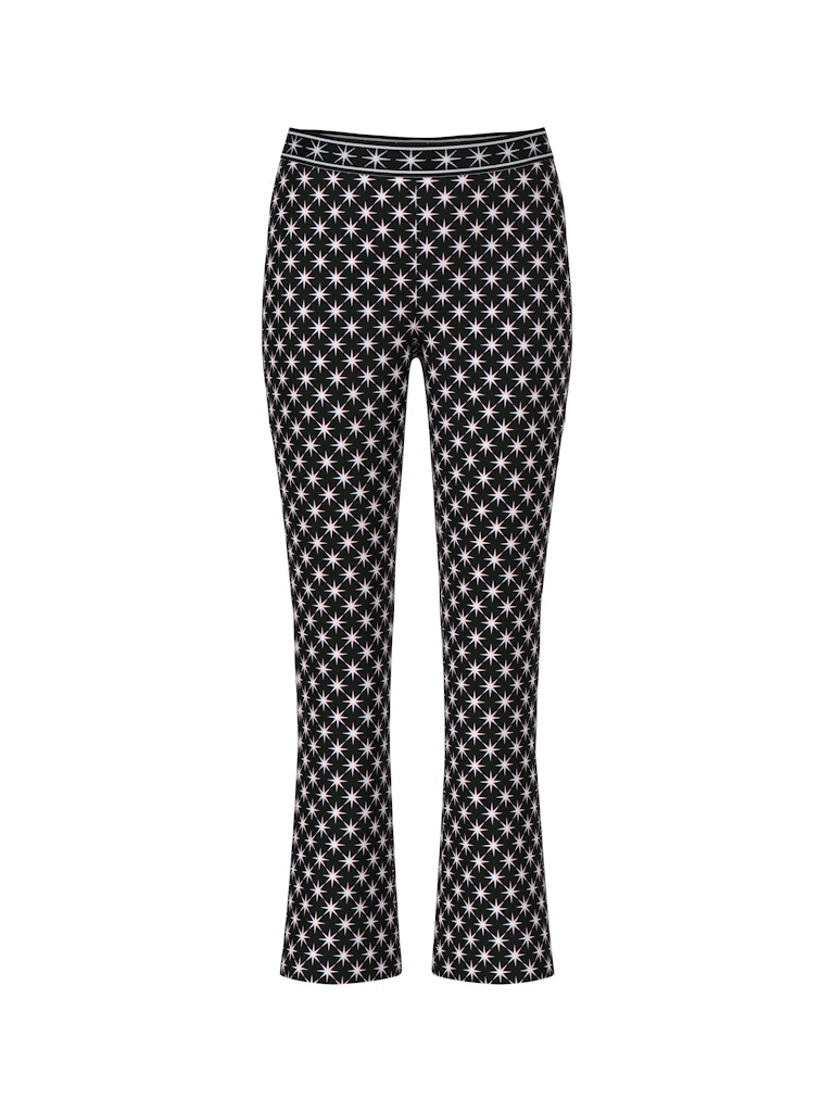 Enkellange flared broek van Marc Cain Sports in een all-over dessin met een elastische tailleband.