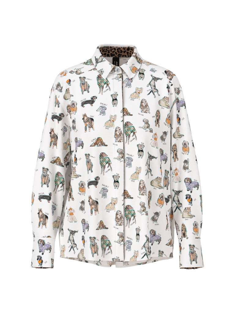 Blouse van Marc Cain Sports in een honden print met lange mouwen, kraag en een knoopsluiting. Materiaal: Katoen 100%