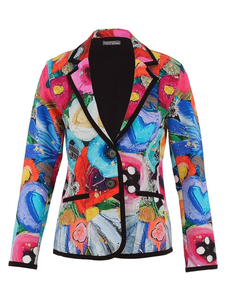 Blazer van Dolcezza in een all-over dessin met lange mouwen, reverskraag, schoudervullingen, knoopsluiting en twee paspelzakken.