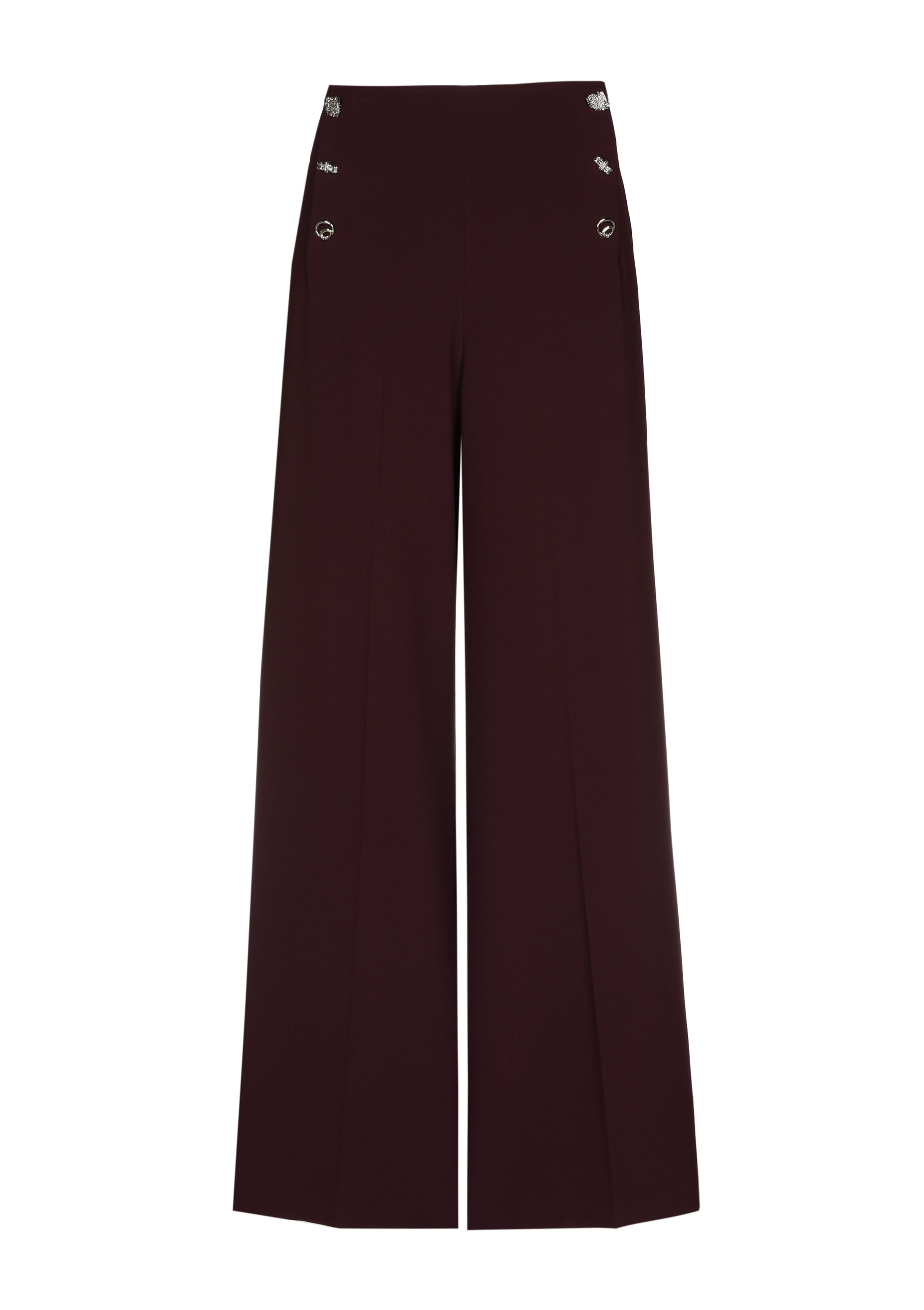 Broek van Caroline Biss met wijde pijpen, steekzakken, sierknopen detail, verborgen ritssluiting in de zijnaad en een hoge taille.