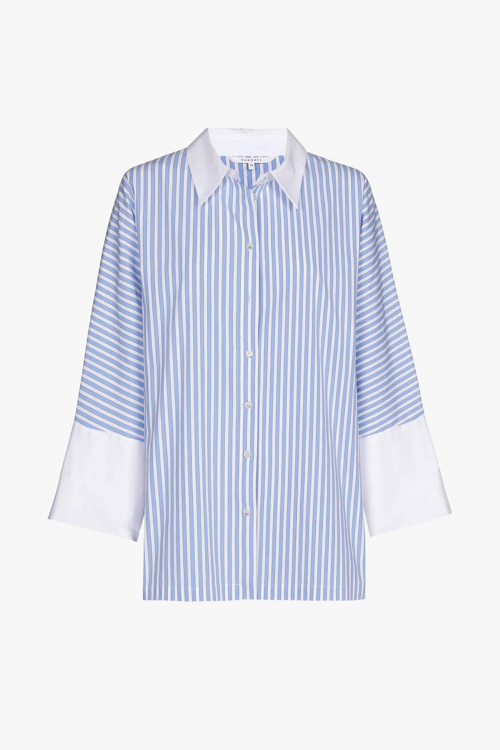Gestreepte blouse van Xandres met driekwart mouwen, brede manchetten in contrastkleur, contrasterende kraag en een knoopsluiting.