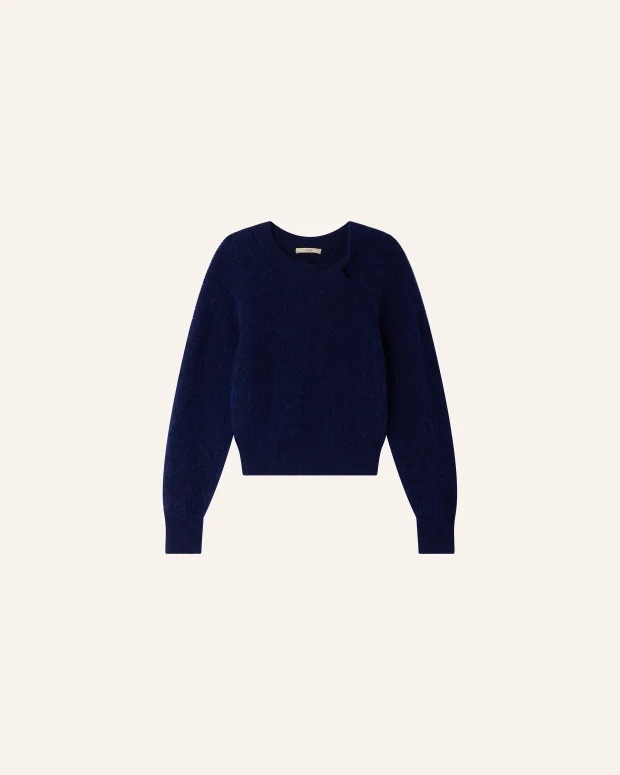 Getailleerde cropped trui van Sessùn in donzig geribbelde knit met twisted kraag en lange mouwen.
