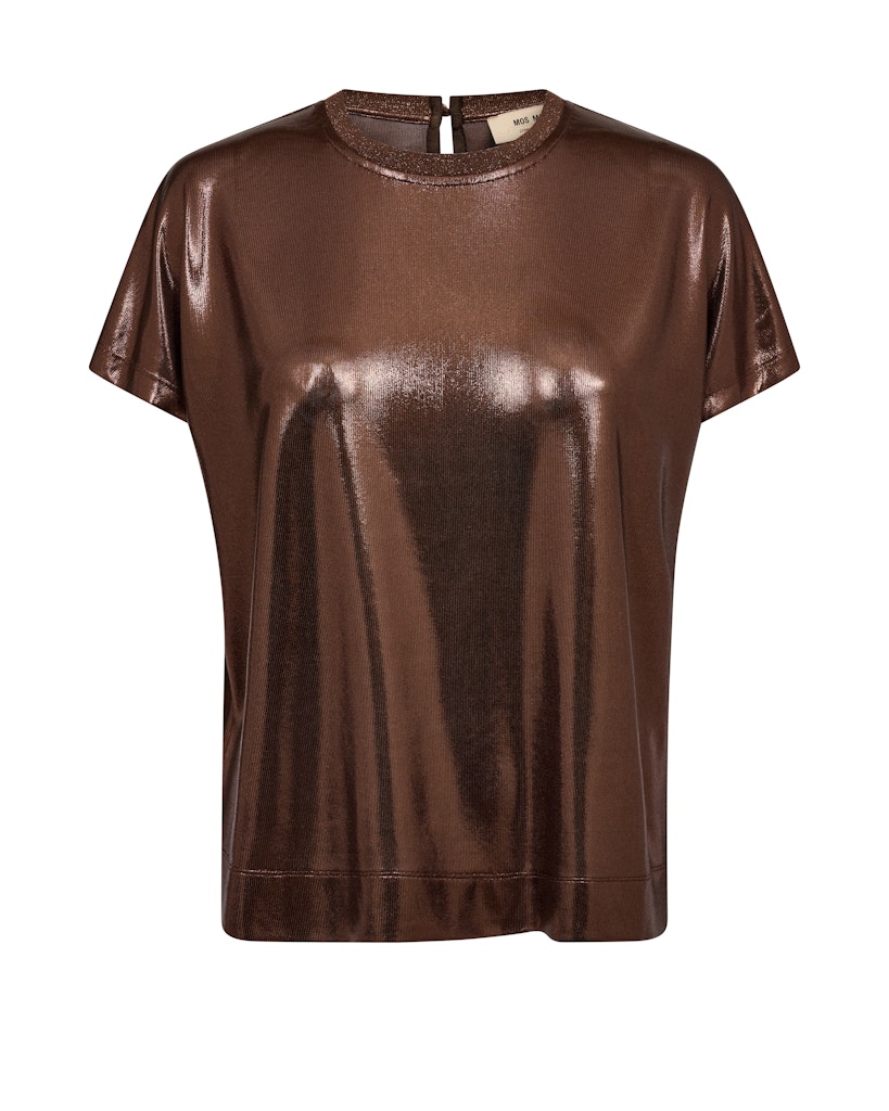 Metallic shirt van Mos Mosh met korte mouwen, ronde hals en een keyhole voorzien van knoopsluiting aan de achterzijde.