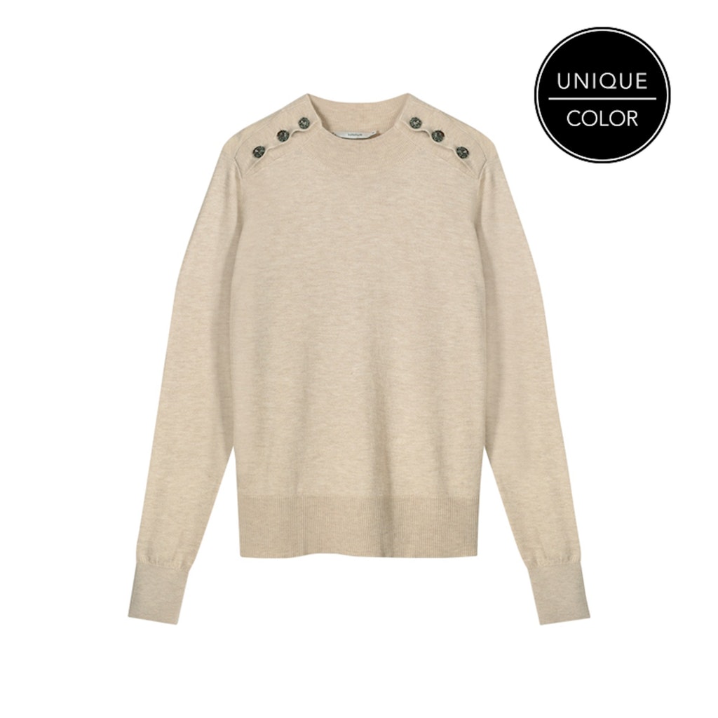 Trui van Summum met lange mouwen, ronde hals en knopen op de schouders. Materiaal: Viscose 35%| polyamide 35%| alpaca 30%