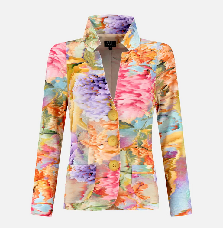 Blazer van ML Collections in een all-over dessin met lange mouwen, knoopsluiting en opgestikte zakken. Materiaal: Viscose 90%| elastan 10%