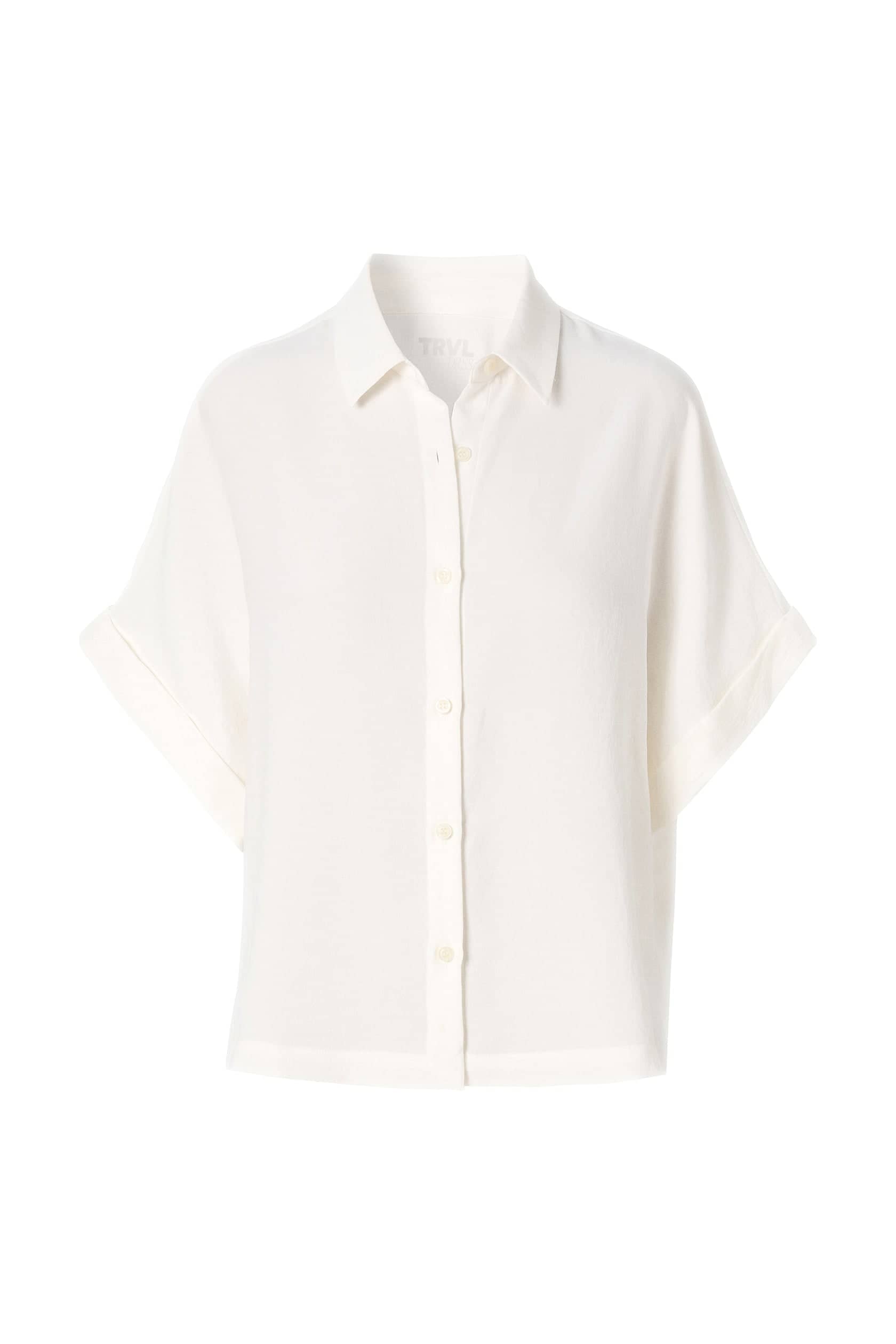 Crêpe blouse van Zenggi Travel Dress met een rechte pasvorm, korte wijde mouwen voorzien van omslag, kraag en knoopsluiting. Materiaal: Polyester 100%