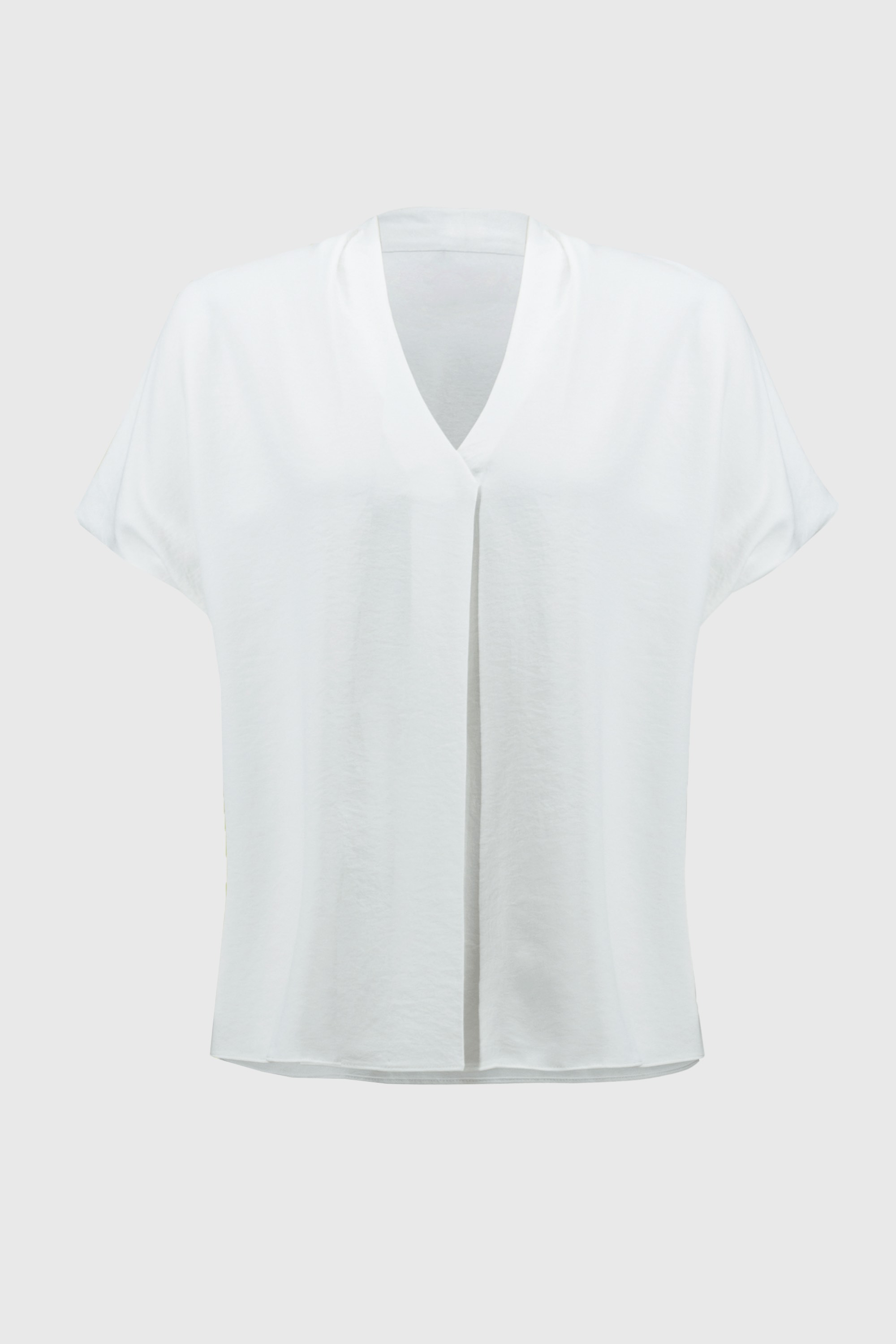 Blouse van Joseph Ribkoff met korte aangeknipte mouwen, opstaande kraag en een V-hals voorzien van ingeslikte plooi. Materiaal: Polyester 100%