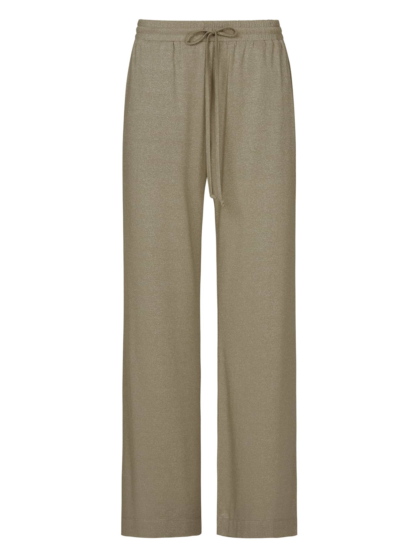 Lurex broek van No Man's Land met wijde pijpen, elastische tailleband voorzien van strikkoord en steekzakken. Materiaal: Viscose 68%| polyester 13%| polyamide 12%