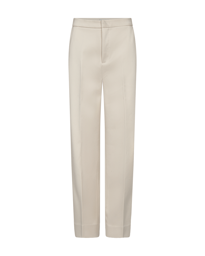 Pantalon van Copenhagen Muse in een glanzende stof met een schuifknoop- en ritssluiting, vouwnaden, steekzakken en paspelzakken
