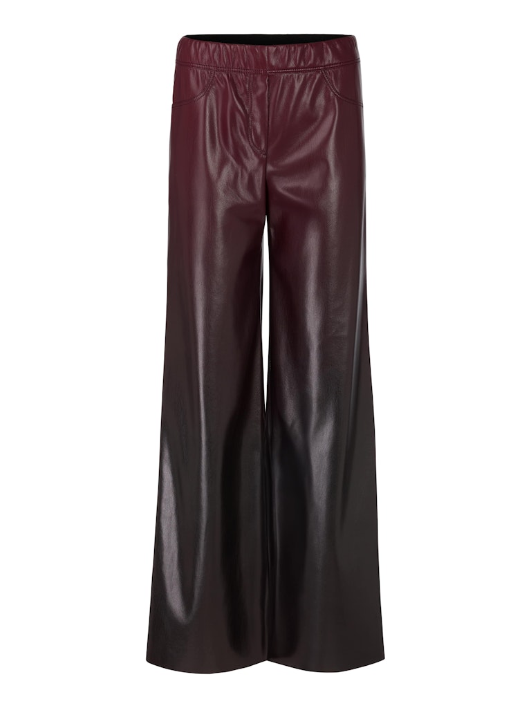 Imitatie leren broek van Marc Cain met wijde pijpen met steekzakken, opgestikte achterzakken en een elastische tailleband.