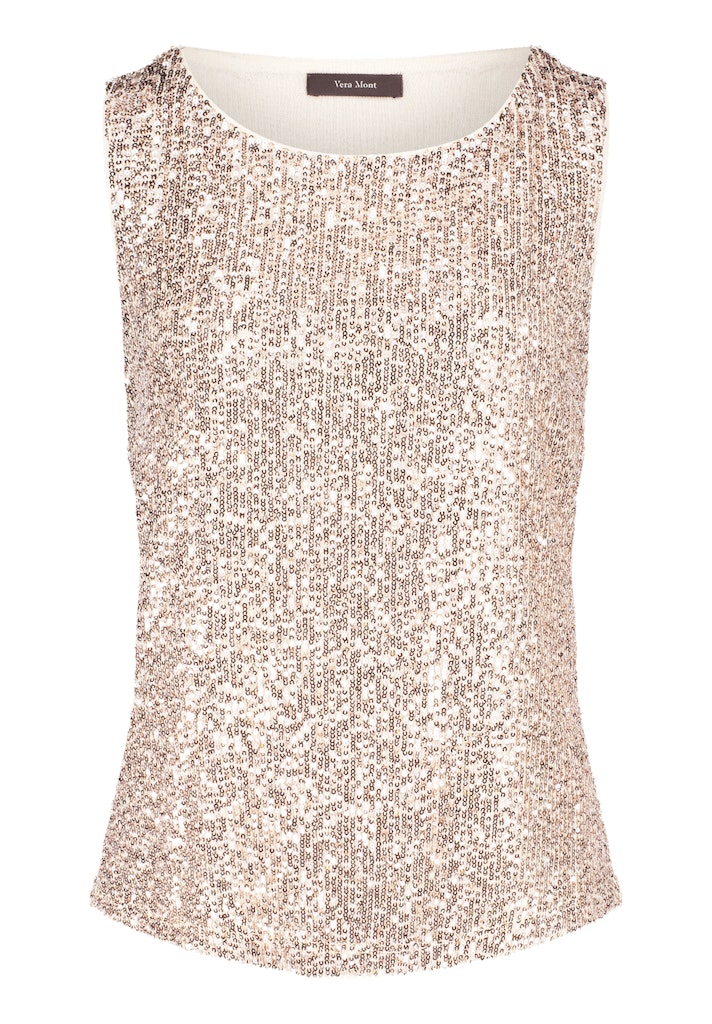Mouwloze pailletten top van Vera Mont met een ronde hals. Materiaal: Polyester 93%| elastan 7%