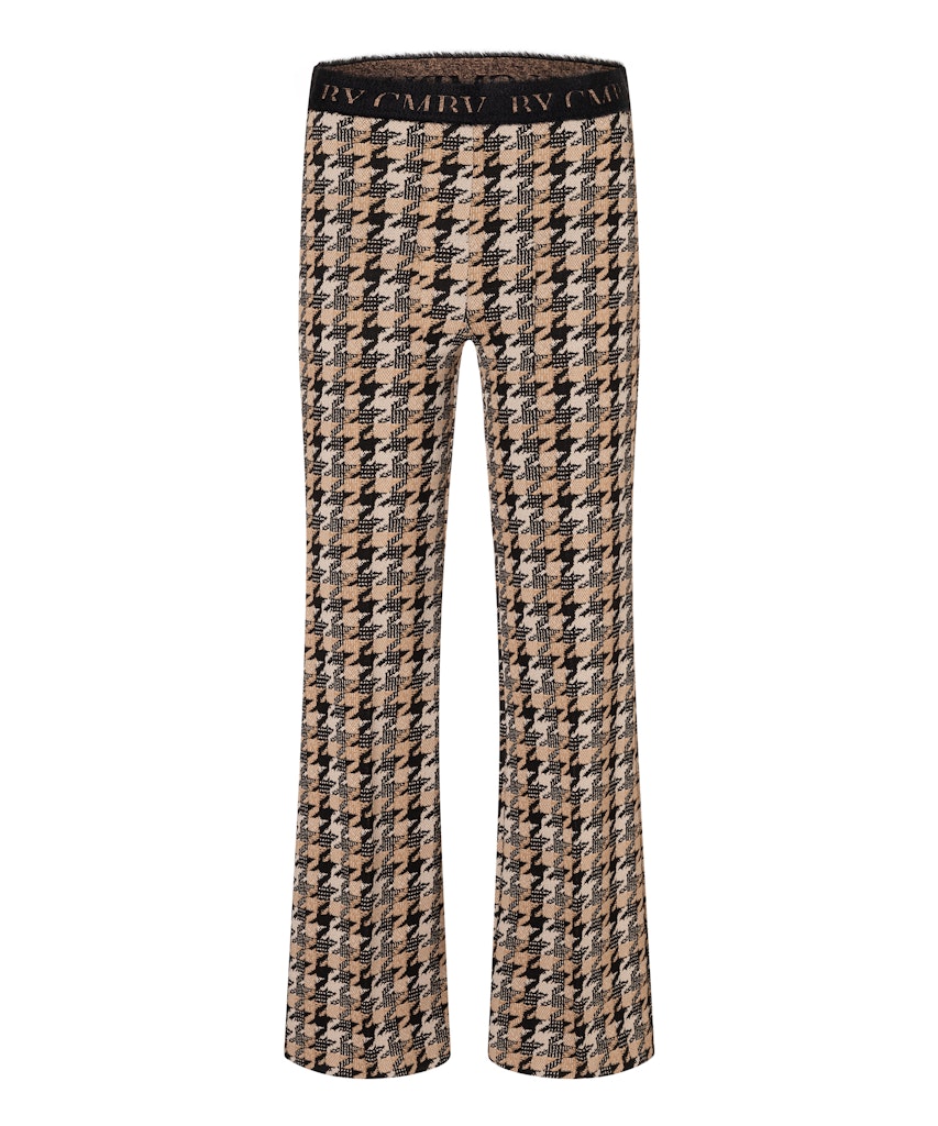 Flared broek van Cambio in een pied-de-poule dessin met een elastische tailleband voorzien van tekst.