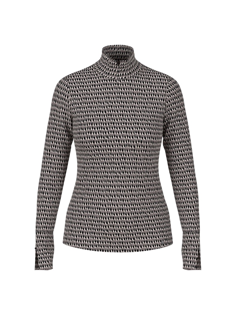 Shirt van Marc Cain in een all-over dessin met lange mouwen voorzien van split in de manchetten en een opstaande kraag voorzien van kleine split.