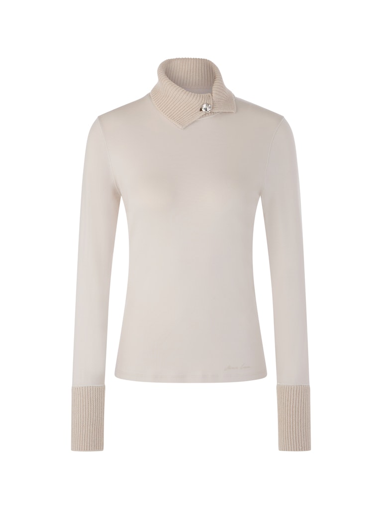 Shirt van Marc Cain met lange mouwen voorzien van brede gebreide manchetten en een gebreide kraag voorzien van sierknoop.