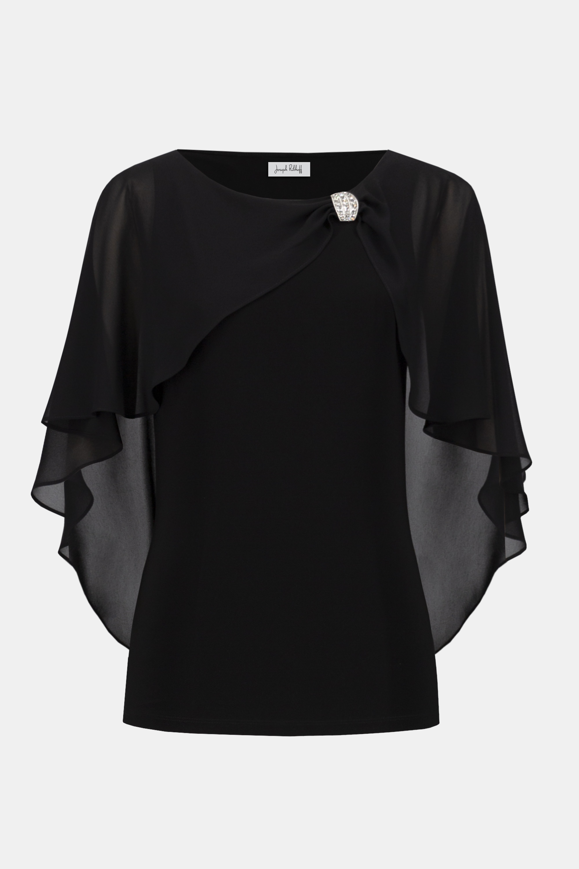 Top van Joseph Ribkoff met een boothals en een chiffon cape voorzien van broche. Materiaal: Polyester 100%